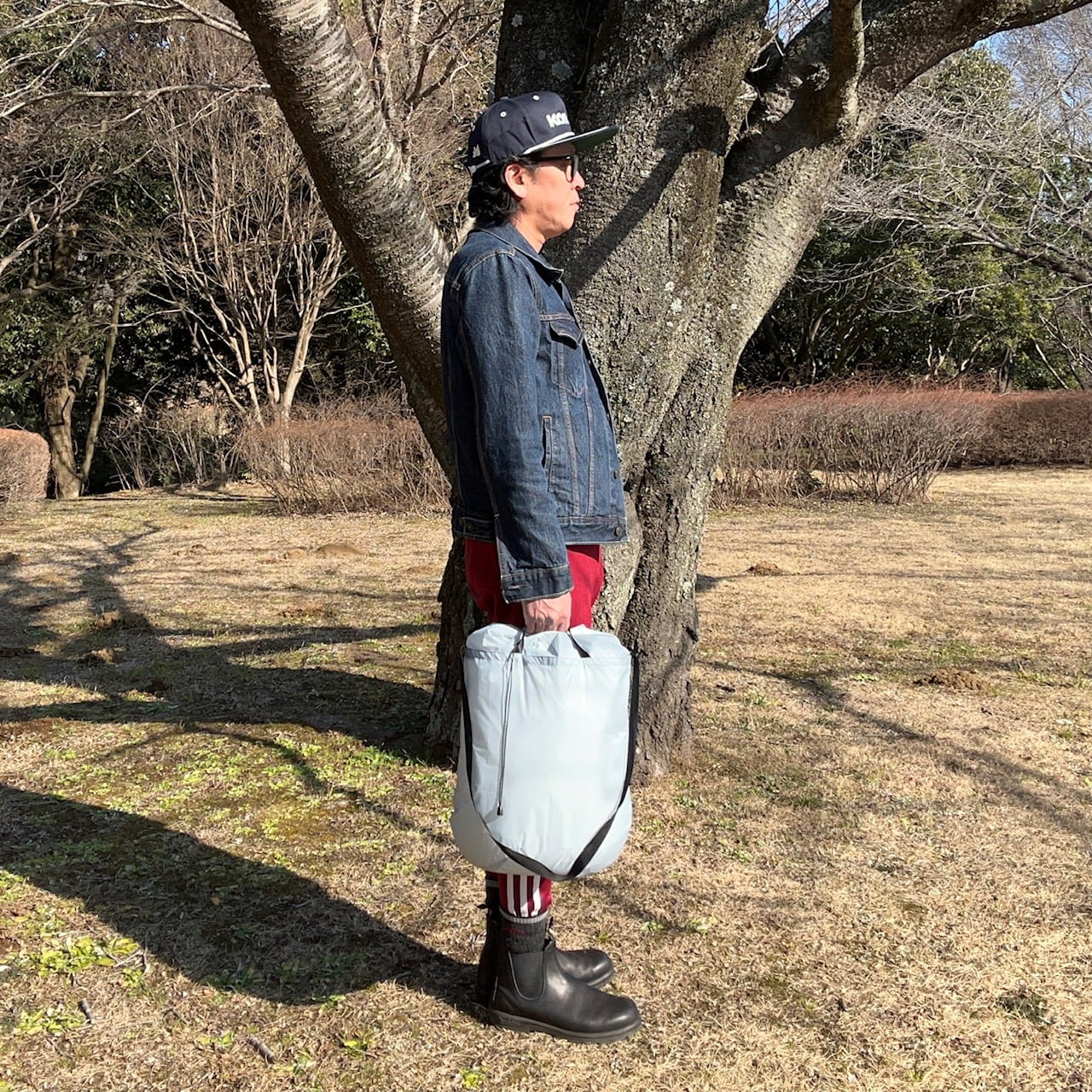 もちろん、使い方はあなた次第。普段から持ち歩くバッグに忍び込ませておきエコバッグ的に使うもよし。ハイキングのパッキング時にスタッフバッグとして使うもよし。週末の1泊温泉旅行に使うもよし。ミニマリストであれば沖縄2泊3日の旅行も可能でしょう。