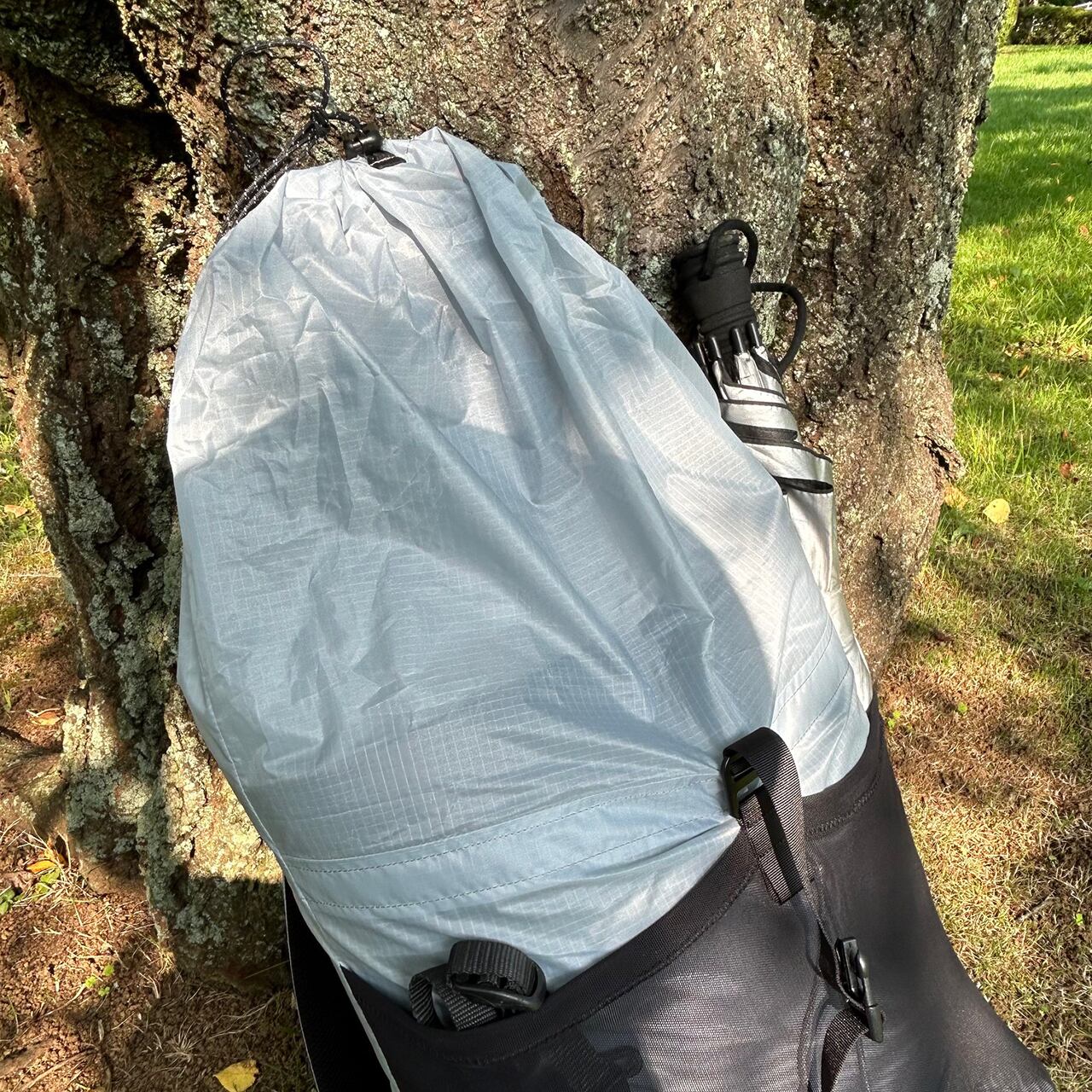 当然、背面パッドも付いていません。クローズドセルタイプのスリーピングマットを筒状に入れパッキングする構造です。